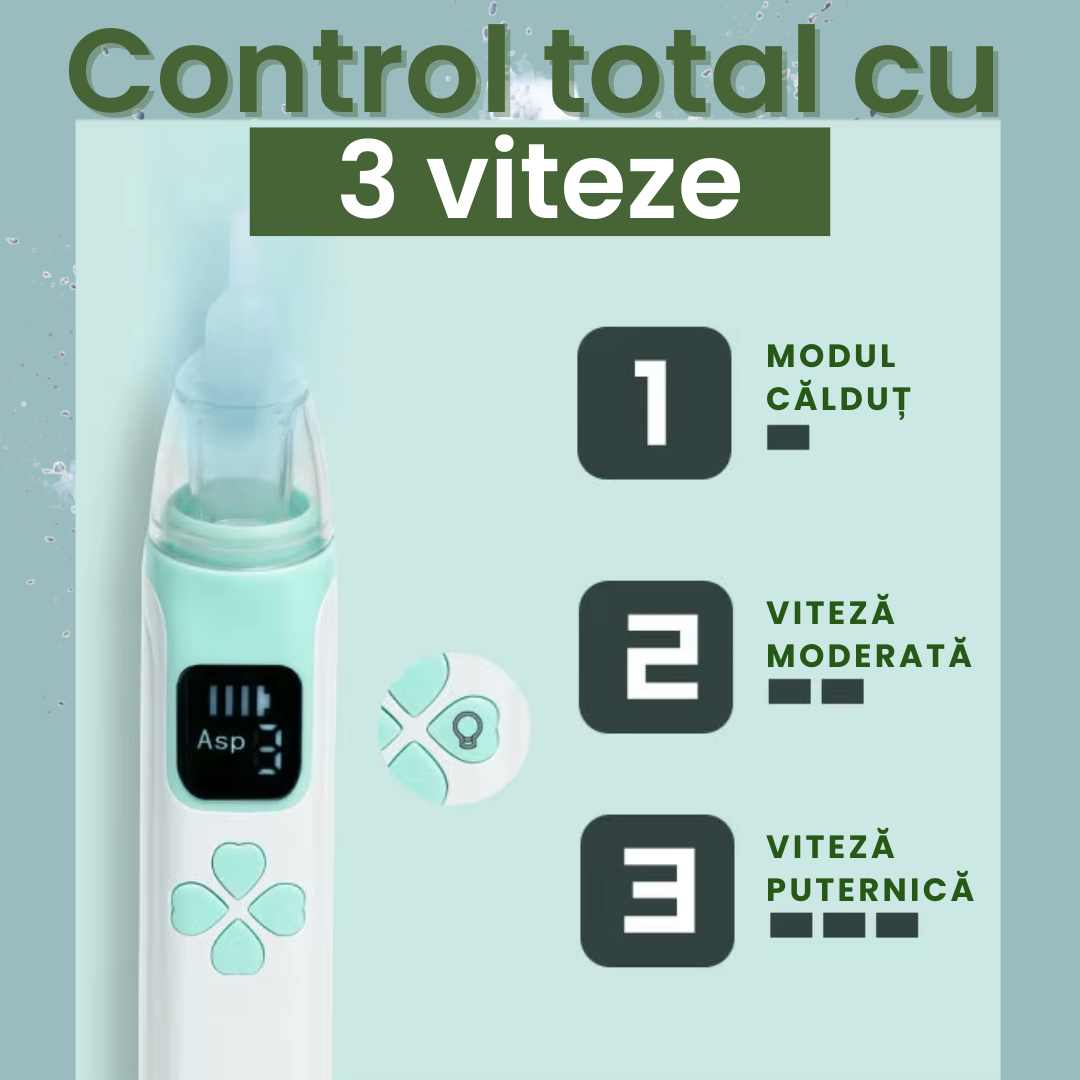 Pentru cazurile mai dificile, când mucusul este gros sau uscat. Puterea crescută ajută la eliberarea rapidă a căilor respiratorii, astfel încât bebelușul să respire ușor din nou.