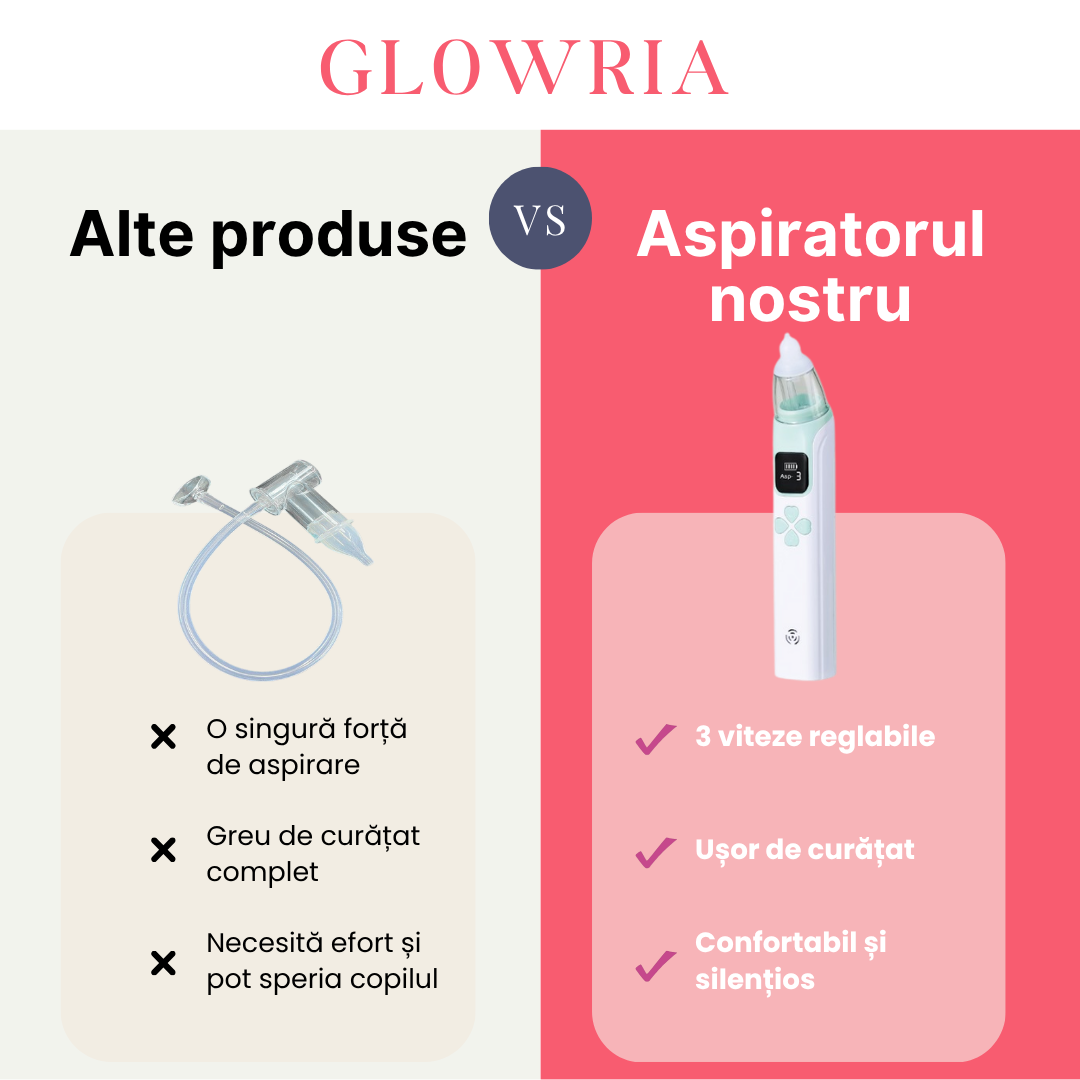 Pompele manuale sunt greu de controlat și pot irita nasul sensibil. Spray-urile saline doar fluidifică mucusul, fără a-l elimina complet. Aparatele ieftine sunt zgomotoase, ineficiente și inconfortabile pentru bebeluș.