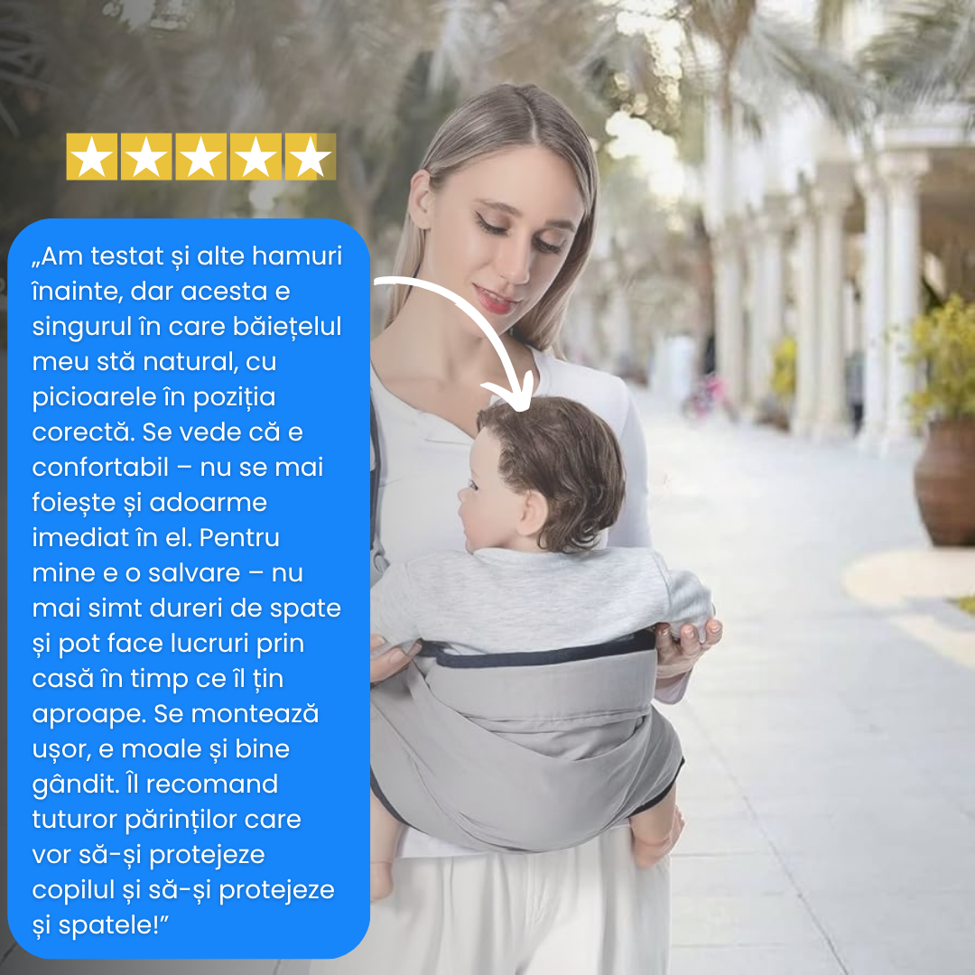 Îl recomand tuturor mămicilor care vor să-și țină copilul aproape fără să-și sacrifice coloana vertebrală 😊.”
